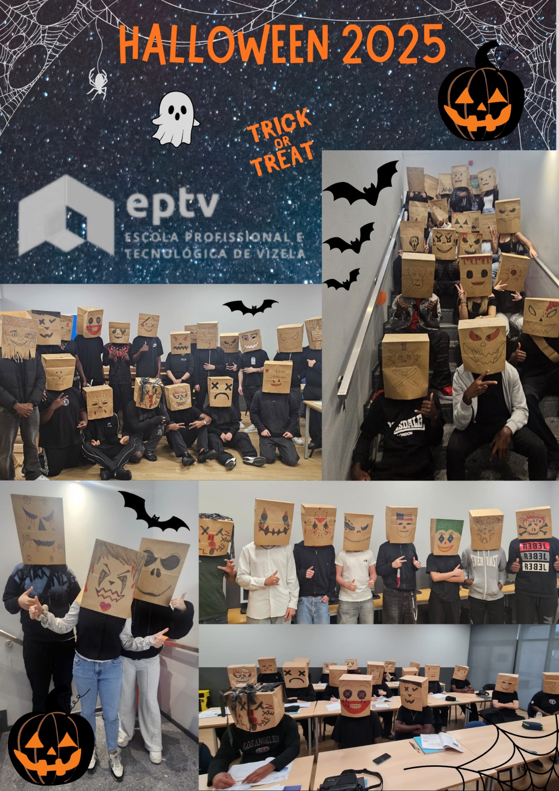 Entre sustos e gargalhadas, os alunos dos cursos profissionais a Escola Profissional e Tecnológica de Vizela viveram um Halloween diferente! Atividades criativas na escola e momento cheios de energia e competição no Pavilhão dos Bombeiros Voluntários de Vizela fizeram deste dia uma experiência inesquecível!